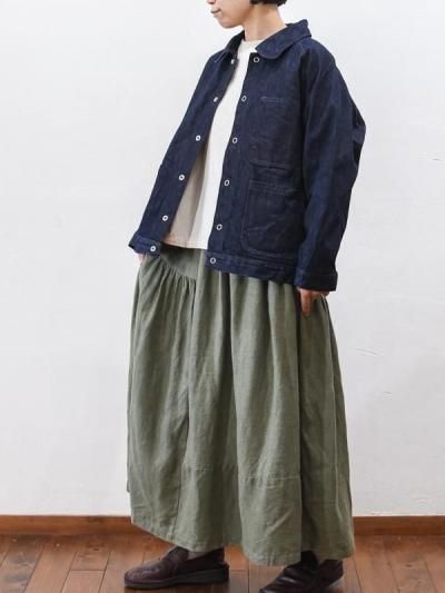 起毛リネンツイルランダムカットタックギャザースカート/ベージュ・カーキ・ネイビー