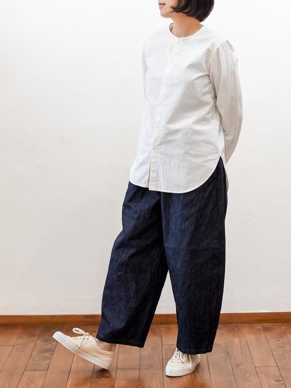 全体的にゆったりとしつつ、裾に向かって細くなるコクーンシルエット。ボリュームがありながらも裾にむかってすっきりさせているので、スタイル良く穿いていただけます。