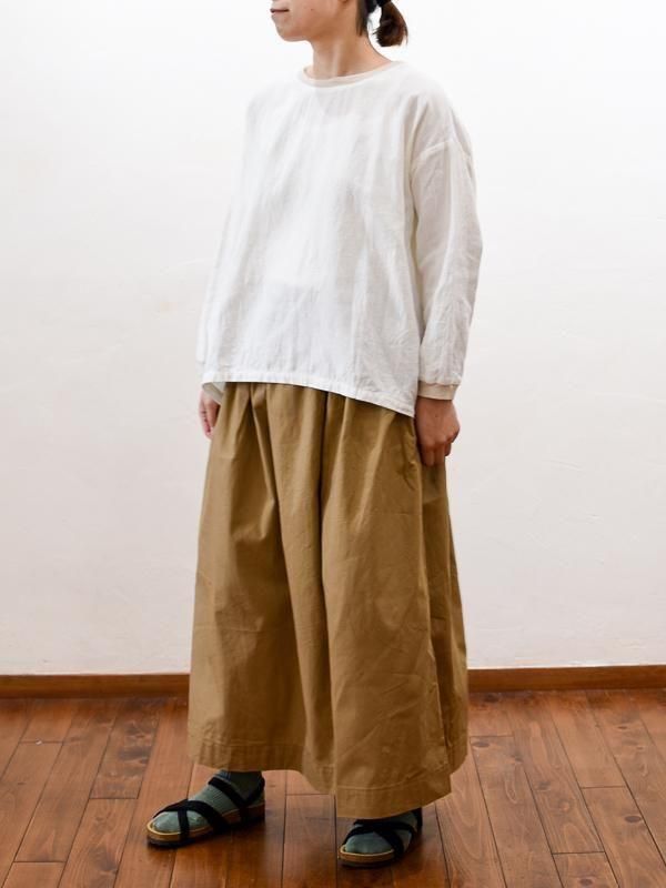 程よいボリューム感もありながら軽やかな印象で着こなせるスカートです。12本のタックが生み出す立体的で上品なシルエットが魅力。ウエスト周りがスッキリとしたシルエットなので合わせる靴やトップスによってはカジュアルにも上品にもなる重宝する1枚。